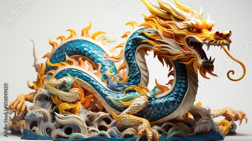 © Drew, Fototapeta premium chinese dragon statue. dragon on a white background. Golden Dragon. blue dragon. dragon symbol of the year
