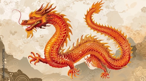 © Hassan, Fototapeta premium chinese dragon statue sketch new year dragons china painting digital origami