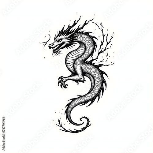 © mustakim, Fototapeta premium chinese dragon tattoo vector