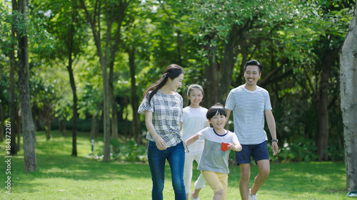 © allensima, Obraz premium Chinese family smiling & walking together in park