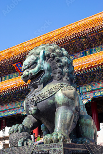 Obraz premium Chinese guardian lion, Forbidden City, Beijing, China.