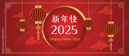 © Anna, Naklejka premium Chinese happy new year 2025 template.Red background, vertical banner, poster and lantern.