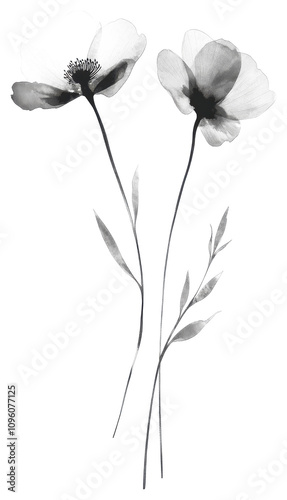 © Image Flow, Obraz premium Chinese ink brush strokes flower element PNG transparent