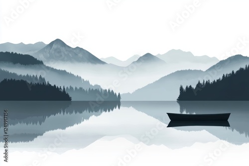 © Diavolorosso, Fototapeta premium Chinese ink painting style, with distant mountains and rivers featuring misty peaks in the background
