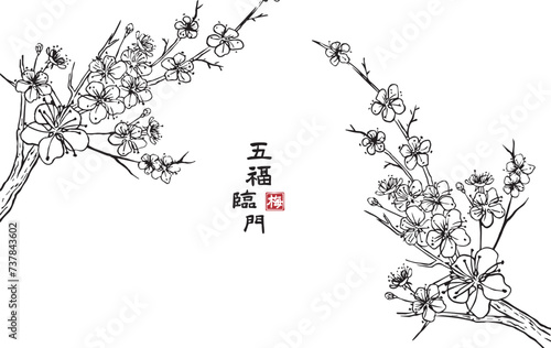© Allie su , Naklejka premium Chinese ink painting water ripples retro background
