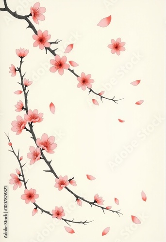© Eliane, Fototapeta premium Chinese Ink Wash Painting: Peach Blossoms in Bloom