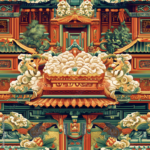 © NaLan, Fototapeta premium Chinese-inspired doodle tile seamless patterns in an illustrator graphic style