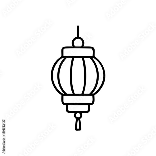 Obraz premium Chinese lantern icon in black and white line art, celebration symbol with...
