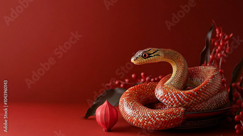© rafliand, Fototapeta premium chinese lunar new year with lantern and traditional lion dance background, year of the snake festival celebration background
