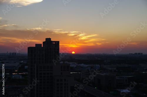 © hunterbliss, Fototapeta premium Chinese modern buildings in the sunset
