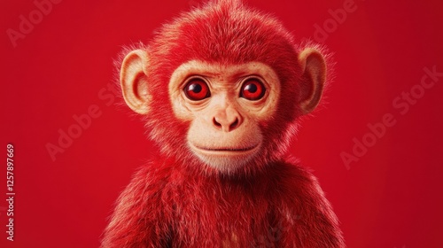 © Business Pics, Fototapeta premium chinese monkey toy on red background
