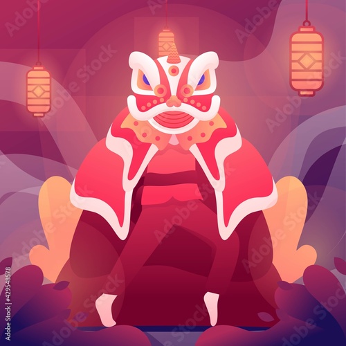 Obraz premium Chinese New Year banner illustration with a lion dance