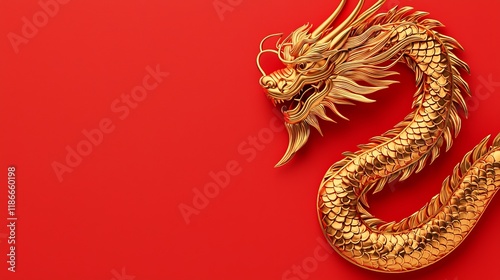 © KENZOGROW, Obraz premium Chinese New Year cards embrace minimalist design. Golden dragon on a vibrant red background, symbolizing power and prosperity.