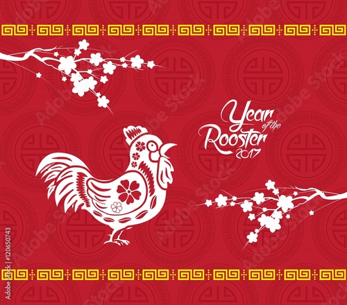Fototapeta premium Chinese new year 2017. Cherry blossom and rooster