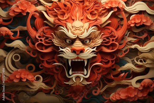 Fototapeta premium Chinese new year concept paper art style background. Dragon and cherry...
