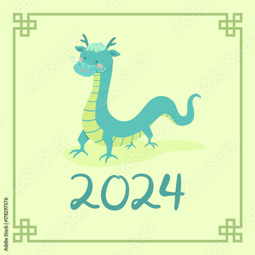 Naklejka premium Chinese New Year 2024 Cute Dragon Zodiac Character Vector Illustration Cartoon Greeting Card