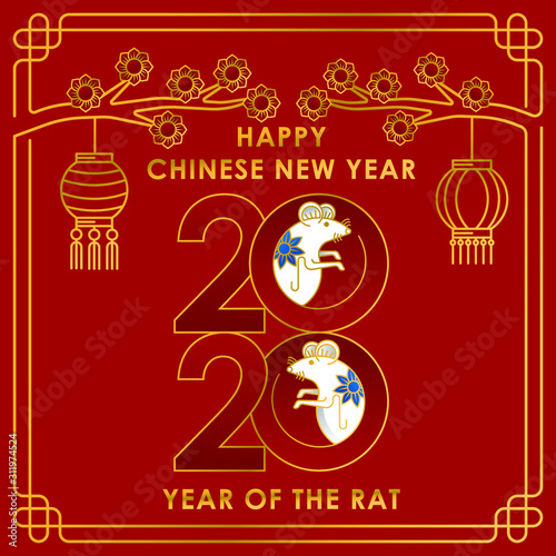 Naklejka premium 2020 Chinese New Year decorative elements. Happy Chinese New Year 2020, new year, Chinese new year 2020 year of the rat, Chinese new year greetings, Year of the Rat, lunar new year, 2020 Beginning con
