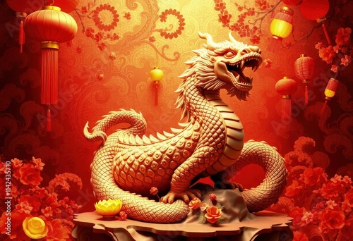 © Rahmat , Obraz premium Chinese New Year Dragon Statue - Snake Statue - Chinese Perfect Background - Perfect Any Project