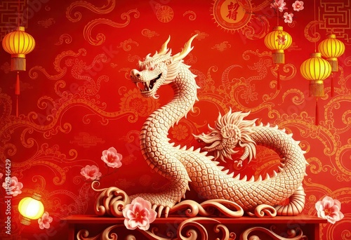 © Rahmat , Obraz premium Chinese New Year Dragon Statue - Snake Statue - Chinese Perfect Background - Perfect Any Project