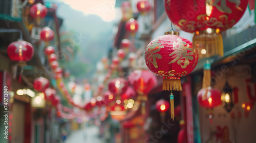© Pavithiran, Naklejka premium Chinese new year festive background with red decoration Generative AI
