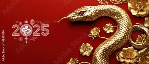 Obraz premium 2025 Chinese New Year: Golden Snake and Floral Design Celebration