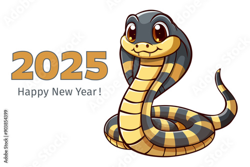 Fototapeta premium Chinese New Year 2025 Illustration, elegant snake and text on isolated white...
