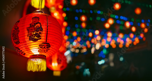 Obraz premium Chinese new year lantern in chinatown area.