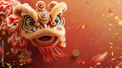 Fototapeta premium Chinese New Year lion dance performance, traditional festive theme, vibrant...