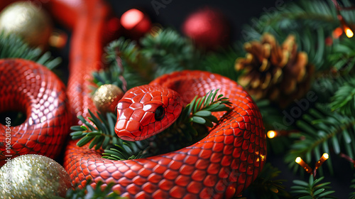 © ink drop, Fototapeta premium 2025 Chinese new year of the snake. A snake surrounded by festive decorations