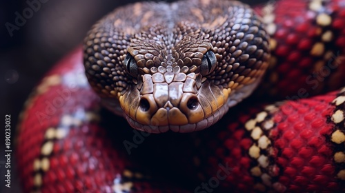 © sorin, Fototapeta premium Chinese new year snake in traditional red oriental attire for year of the snake celebration