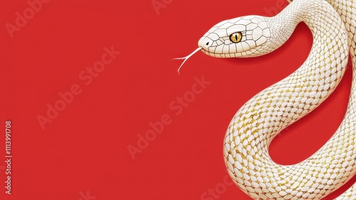 © donchanu, Obraz premium Chinese New Year Snake Red Background Gold Glitter Closeup