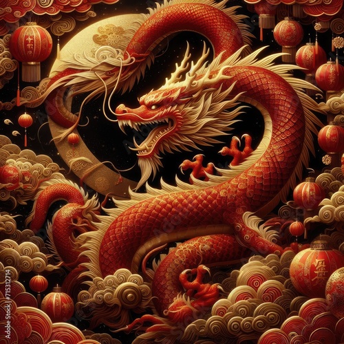 Obraz premium Chinese New Year Splendor: Grand Celebration of the Dragon Zodiac