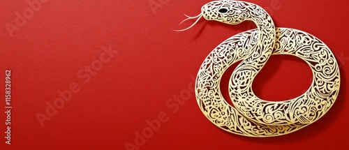 © Nathamanee, Obraz premium Chinese New Year Theme, A gold snake is on a red background