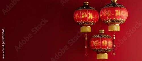 Fototapeta premium Chinese New Year Theme, Three red lanterns hanging from the ceiling
