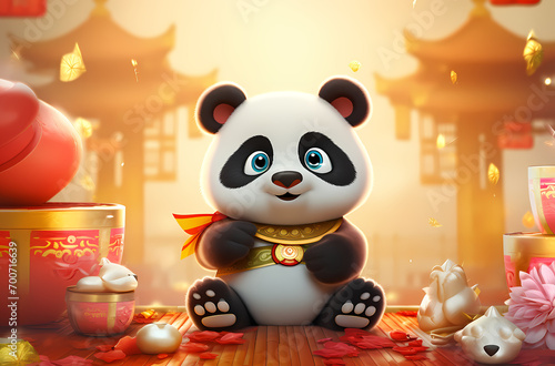 Naklejka premium Chinese new year with panda and Chinese elements