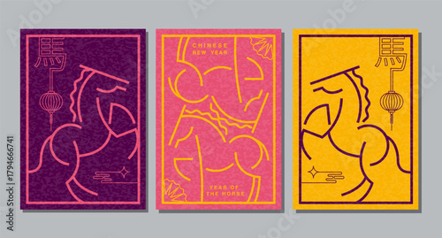 © momo design, Obraz premium Chinese New Year 2026 ,Year of the Horse ,line art , outline , simple linear