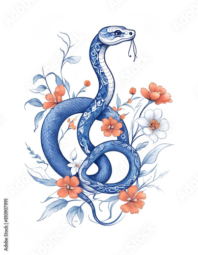 © Fantasy24, Obraz premium Chinese oriental snake. Colored leather trim. Design element for Chinese New Year 2025