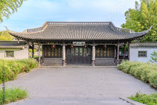 Fototapeta premium Chinese pavilion and traditional architecture of Slender West Lake, Yangzhou China