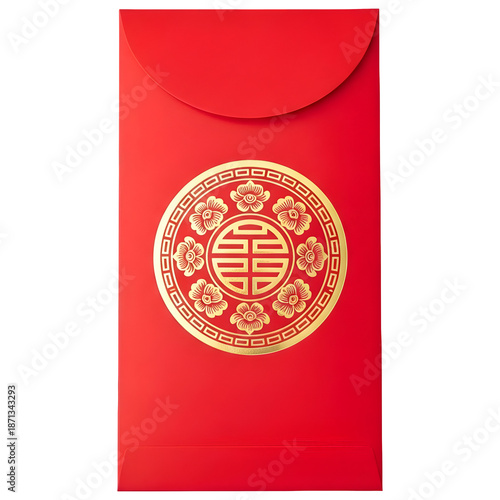 © yanto, Fototapeta premium Chinese Red Envelope with Golden Double Happiness Symbol Isolated on Transparent Background