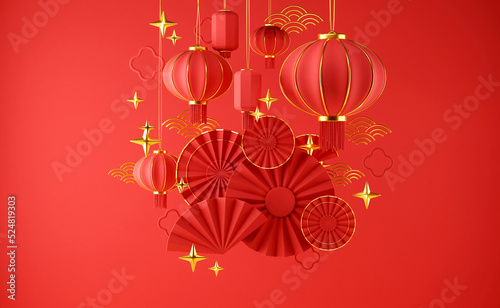© Oksana Kumer, Obraz premium Chinese red luxury background with pedestal, podium, round stage