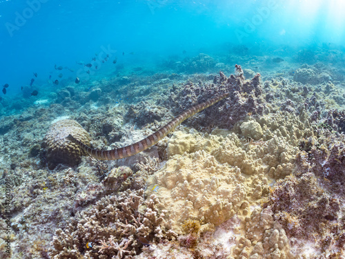 Fototapeta premium エラブウミヘビ, Chinese sea snake, Laticauda semifasciata, コブラ科, 阿嘉島阿嘉ビーチ(真謝浜)...