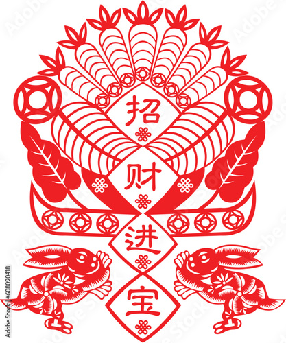 Fototapeta premium Chinese style of paper cut for year of the rabbit.