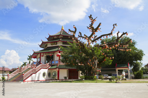 © nanantachoke, Naklejka premium Chinese tample in thailand on blue sky