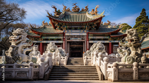 Fototapeta premium Chinese Temple Adorned with Majestic Dragons