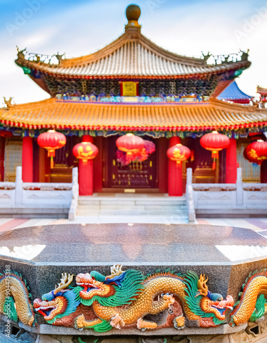 © Rysak, Fototapeta premium Chinese Temple with Dragon Sculpture
