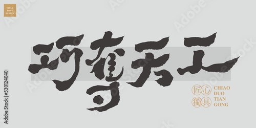 © Claire, Naklejka premium Chinese title font design ”ingenious“ Chinese in the golden coil "Unique", Chinese idiom, Headline font design, Vector graphics