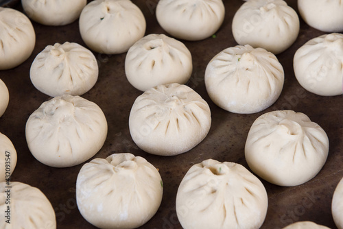 © zhikun sun, Fototapeta premium Chinese traditional food steamed stuffed buns in a container
