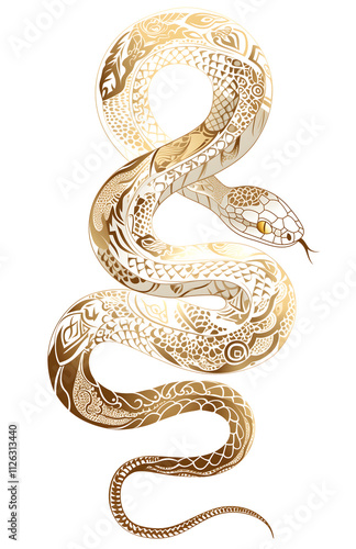 Fototapeta premium Chinese white snake with golden patterned skin. Chinese New Year 2025 zodiac sign. Isolated clipart