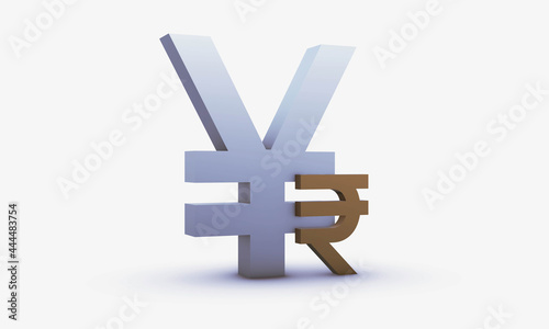 © Ahmed, Obraz premium Chinese yuan and Indian rupee Symbols Isolated on White Background