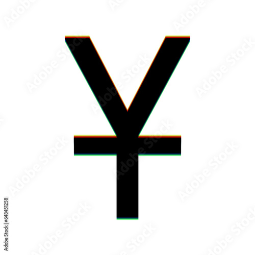 Obraz premium Chinese Yuan sign. Black Icon with vertical effect of color edge aberration at white background. Illustration.